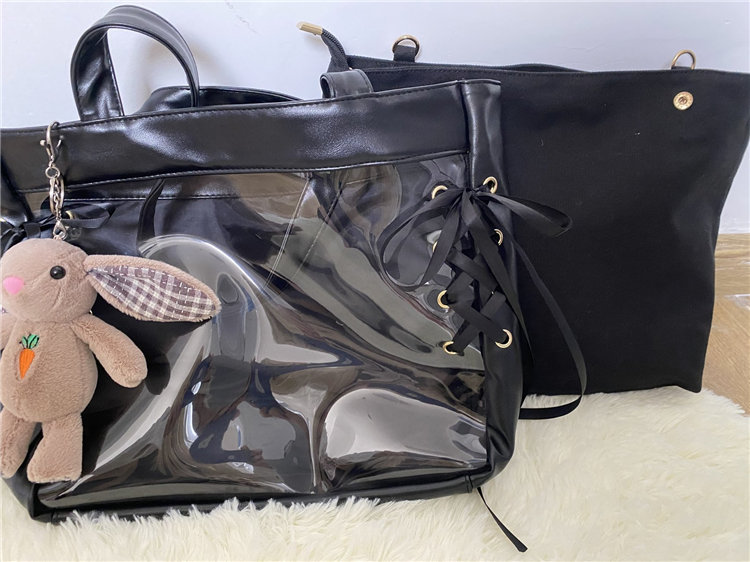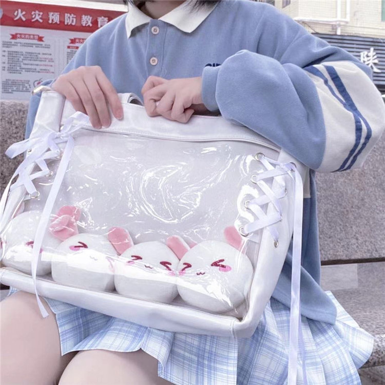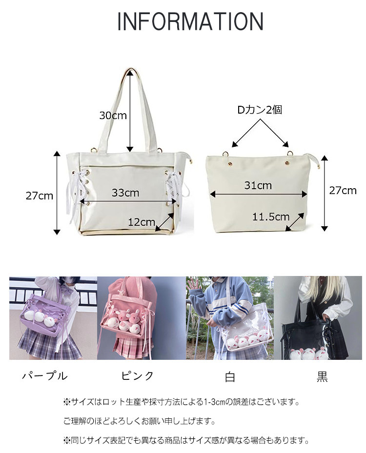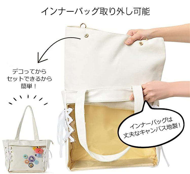 痛バッグ バッグ 痛バ レースアップ レディース ショルダーバッグ トートバッグ いたば リボン A4 a4 大容量 クリアバッグ 推し 推し活 ぬいぐるみ オタク オタク活 オタクバッグ 缶バッチ
